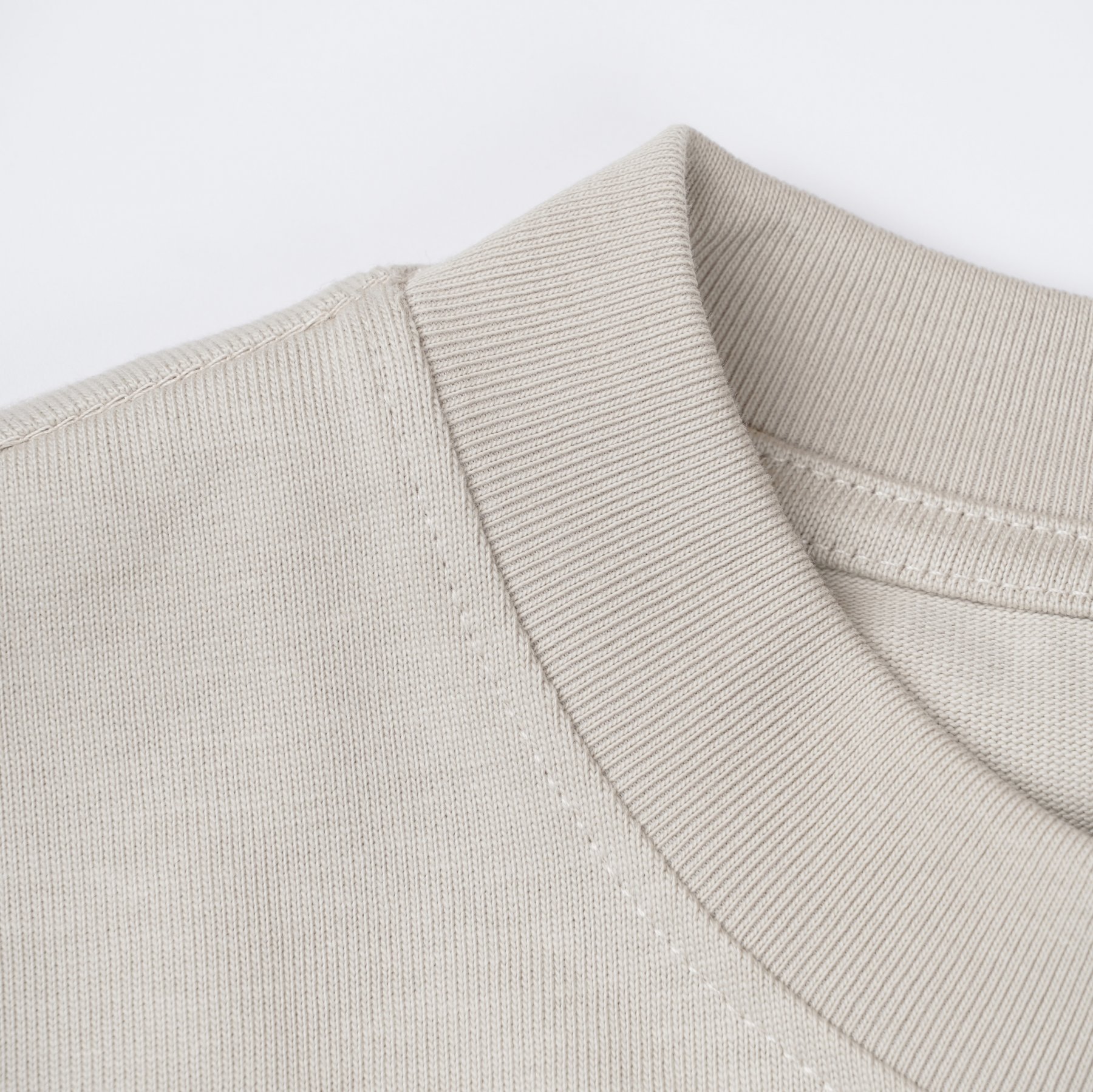 以回彈力且柔軟度更強的羅紋布作為領口原材料。回彈力強的羅紋領口可簡單理解成「極其耐用,不易變形」。而柔軟度則是專為小領口而加入的元素,令其達到標準舒適程度